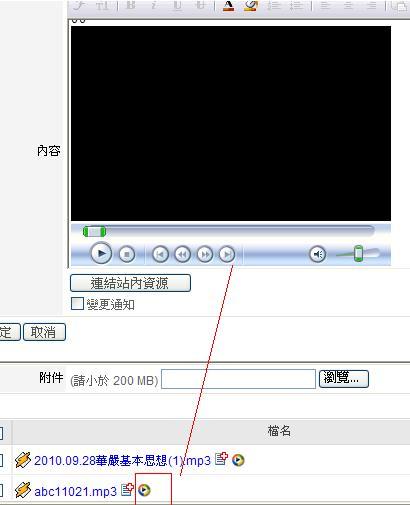 最近[撰寫文件]中的附件, 若使用Insert as media player插入編輯區後,無法播放, 如附件圖